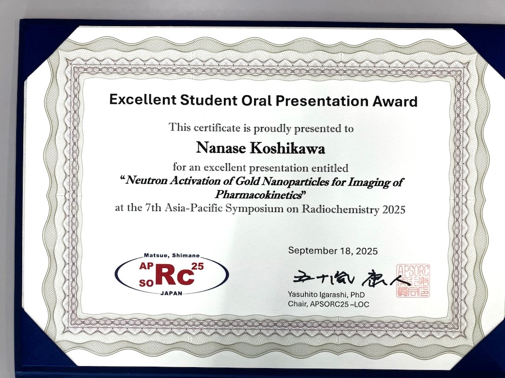 - 【祝!!】2025 Sep.22: 越川七星さん(D2)が7th Asia-Pacific Symposium on Radiochemistry (2025)